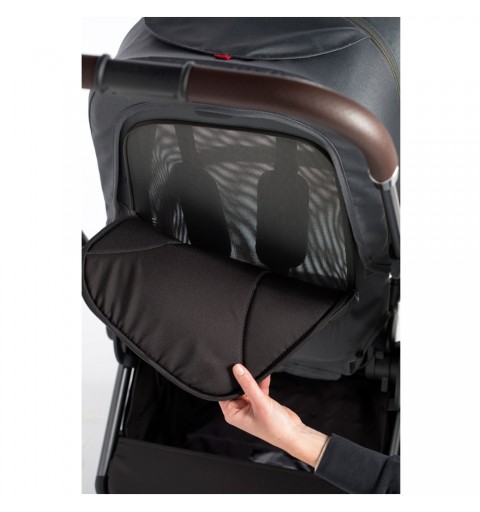 Siedzisko wózka M.6x daje Ci swobodę wyboru kierunku, dzięki czemu Twoje dziecko może być skierowane twarzą do rodzica lub do świata. Siedzisko ma 3- stopniową regulację nachylenia, przy czym najwyższa pozycja pozwala dziecku siedzieć w pozycji pionowej.