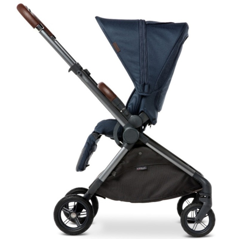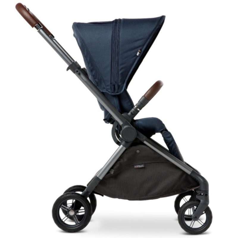 Lekka rama wykonana jest z aluminium, a amortyzacja na wszystkie koła wózka M.5x zapewnia optymalną jazdę.