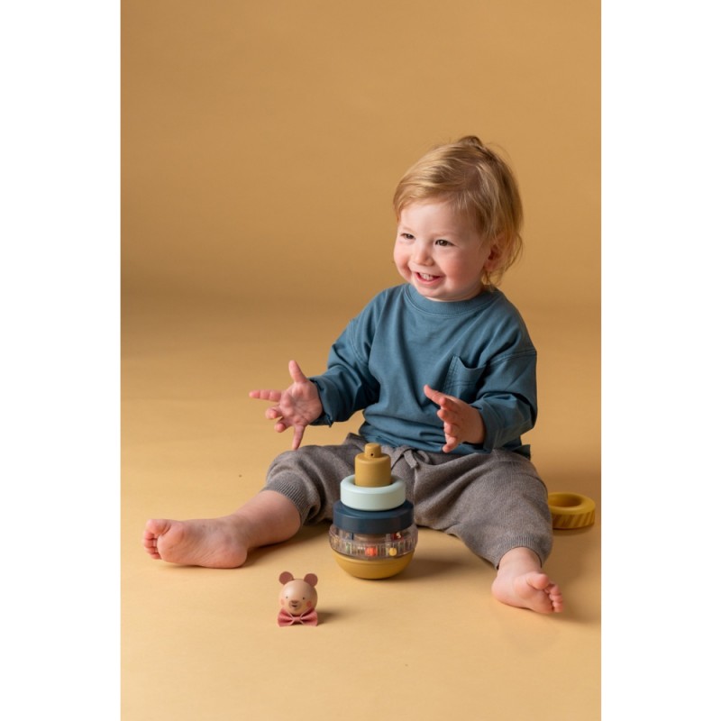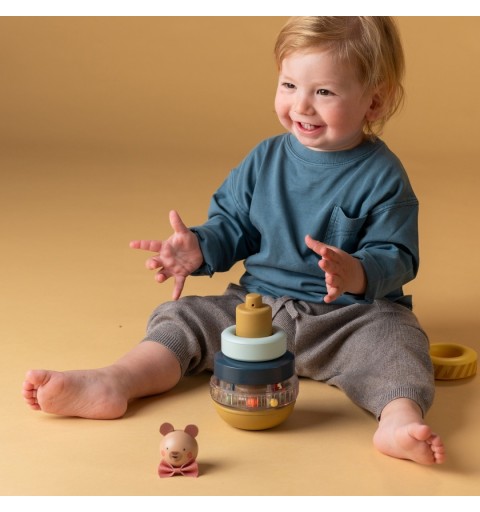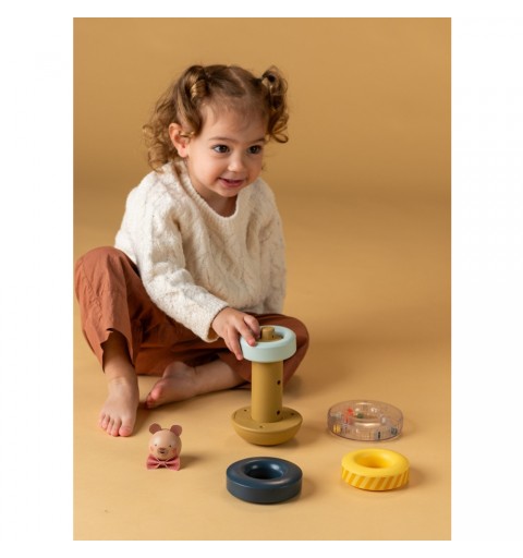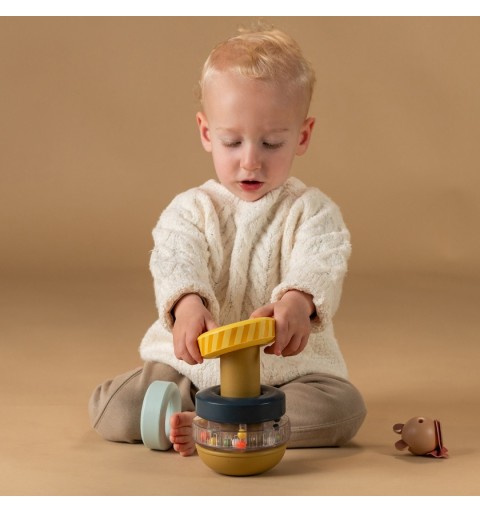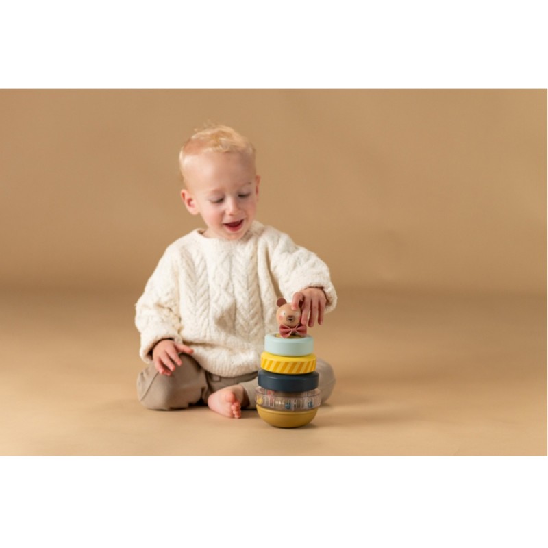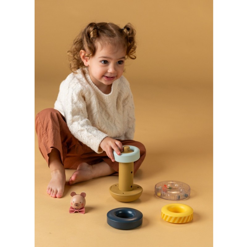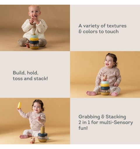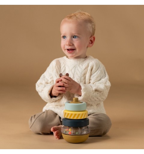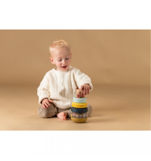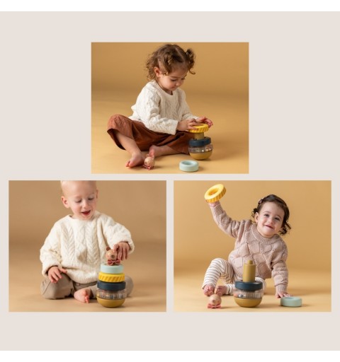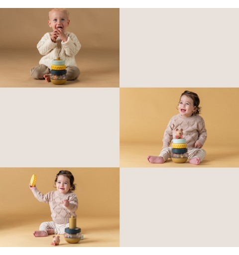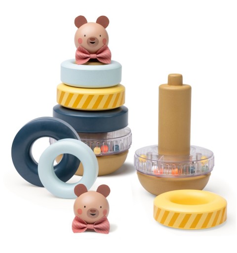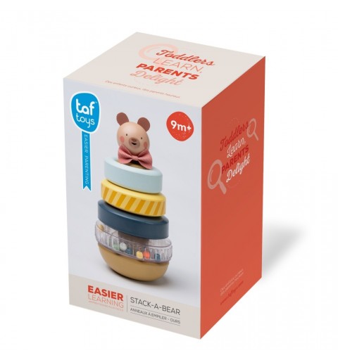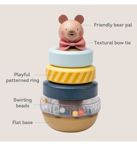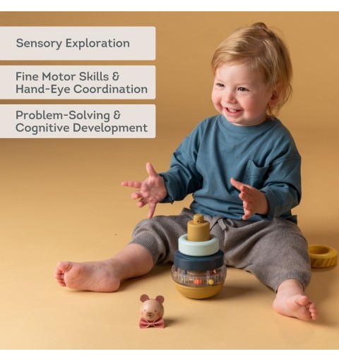 Wieża Sensoryczna – Miś do Układania od Taf Toys to kolorowa i rozwijająca zabawka dla dzieci 9m+. Cztery różne pierścienie – w tym jeden z grzechotką – stymulują zmysły. Maluch może je układać lub turlać, co wspiera rozwój ruchowy i poznawczy. Uroczy miś zachęca do zabawy, a różnorodne faktury i kolory uczą przez działanie. Zabawka pomaga rozwijać motorykę, logiczne myślenie i samodzielność. Bezpieczna, trwała i idealna na prezent !