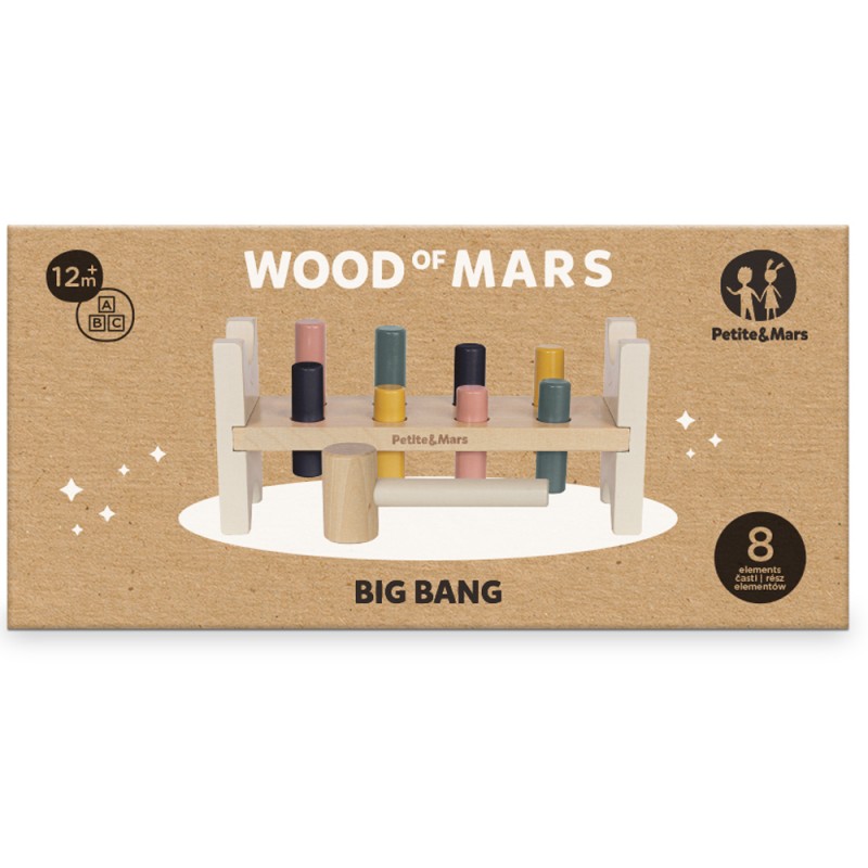 Petite&Mars - Drewniana zabawka do przebijania Big Bang Wood of Mars 12m+