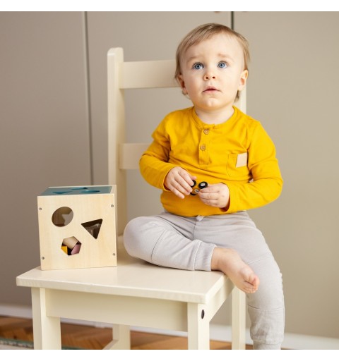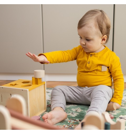 Drewniany sorter GRAVITY rozwija dziecku zdolności manualne, wspierając jednocześnie motorykę precyzyjną, logiczne myślenie, a także ucząc zależności przyczynowo - skutkowych.