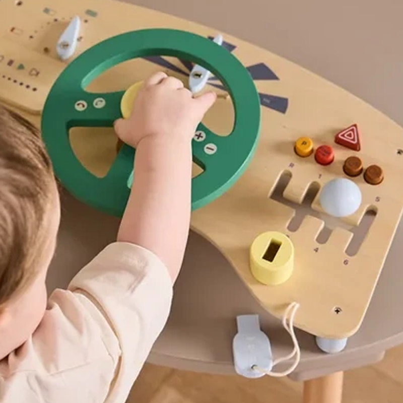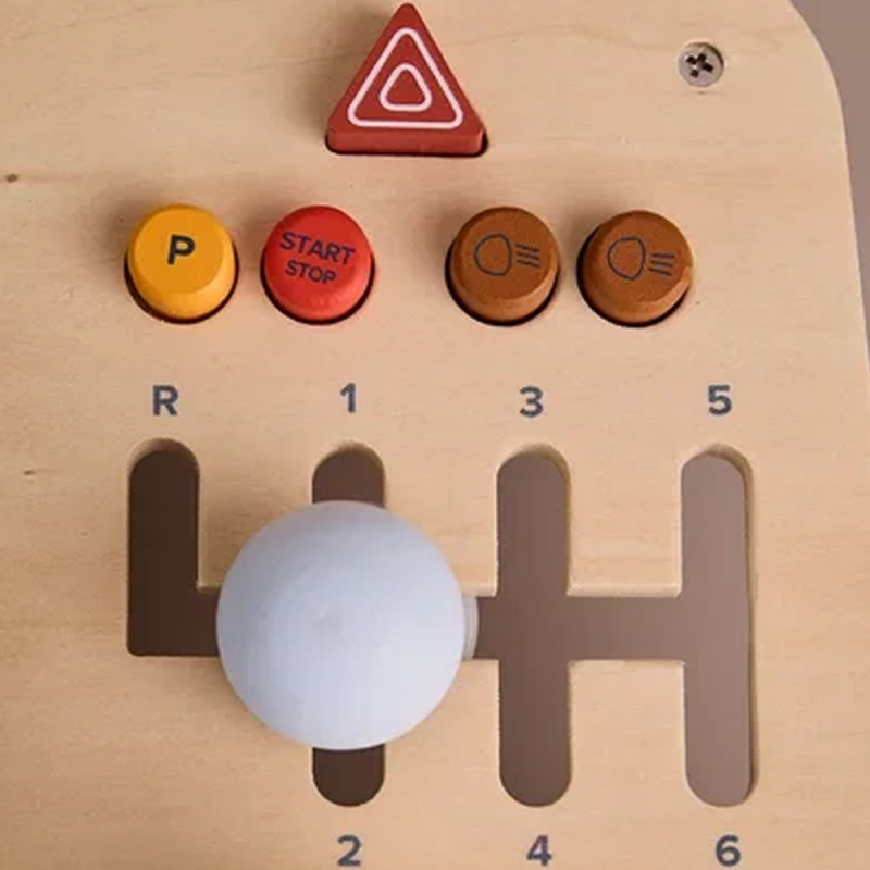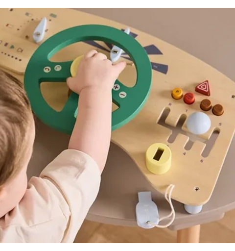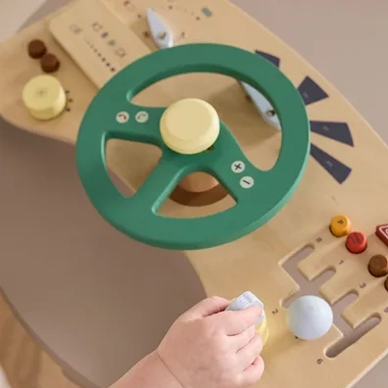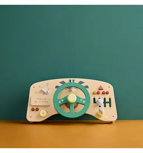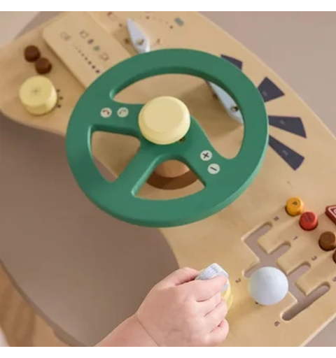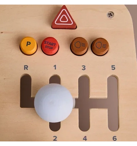 Ta drewniana tablica sensoryczna w kształcie kokpitu pozwala najmłodszym wcielić się w rolę kierowcy własnego pojazdu. Wyposażona w kierownicę z klaksonem, przyciski do naciskania i panel GPS, zachęca do aktywnej, angażującej zabawy już od 12. miesiąca życia.