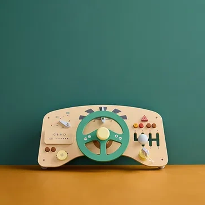 - Drewnianą tablicę aktywności z kierownicą i panelem sterowania