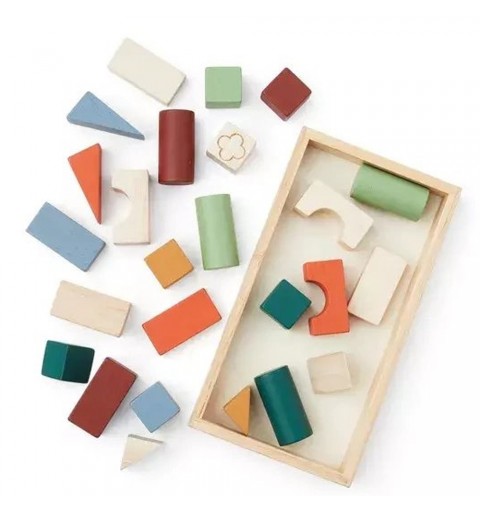 Zestaw 25 klocków o różnych kształtach wraz z drewnianym pudełkiem do przechowywania. Klasyczne klocki są idealne dla dzieci w każdym wieku, ponieważ mogą ćwiczyć umiejętności motoryczne i tworzyć wiele różnych rzeczy. Kolory inspirowane są wnętrzami Karin i Carla Larssonów na ich farmie w Lilla Hyttnäs w Dalarnie.