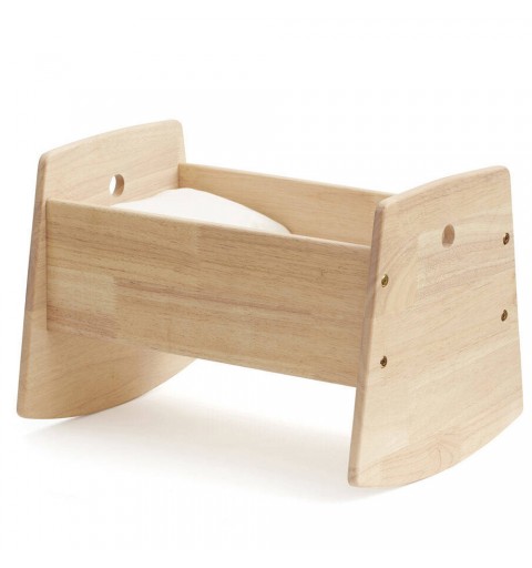 Zestaw zawiera kołderkę, prześcieradło i poduszkę ze 100% bawełny, aby lalkom dobrze się spało. Kołyska została wykonana z drewna kauczukowego. Wymiary kołyski wewnątrz 39x22 cm.