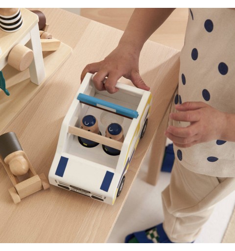 Dwaj policjanci, Mika i Bim, są uczciwi i lubią słuchać ludzi, także, gdy mówią o swoich problemach. Więc zazwyczaj wszystko układa się dobrze. Ale tak między nami, złodziej ma trudności z odróżnieniem dobra od zła. Na szczęście naszej policji w Aiden nigdy nie znudzi się zawracanie go ze złej drogi. Może, ale tylko może, złodziej wkrótce to zrozumie? Zarówno samochód, jak i figurki wykonano z drewna z certyfikatem FSC.