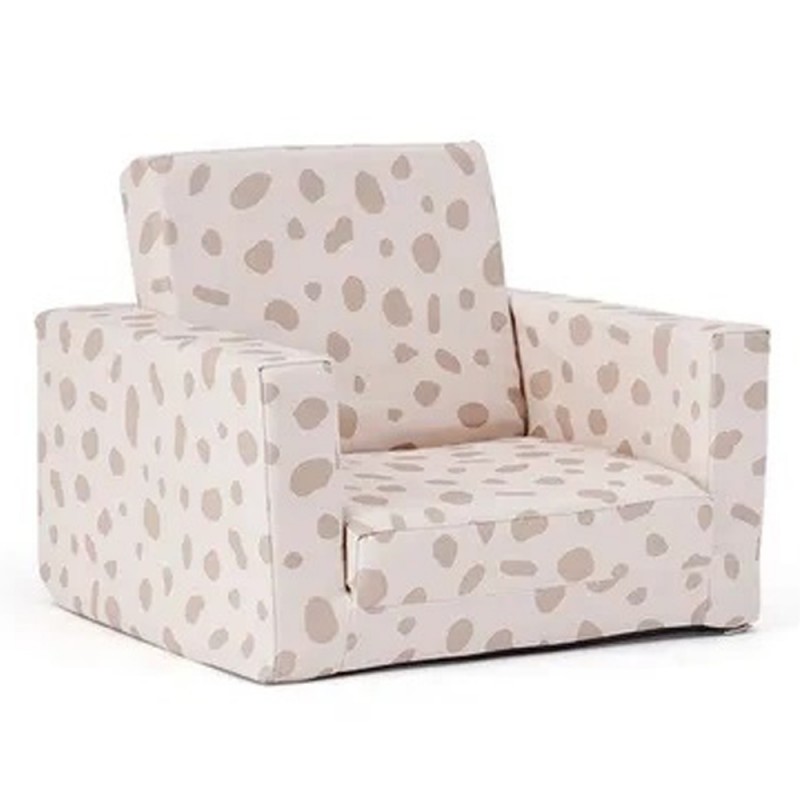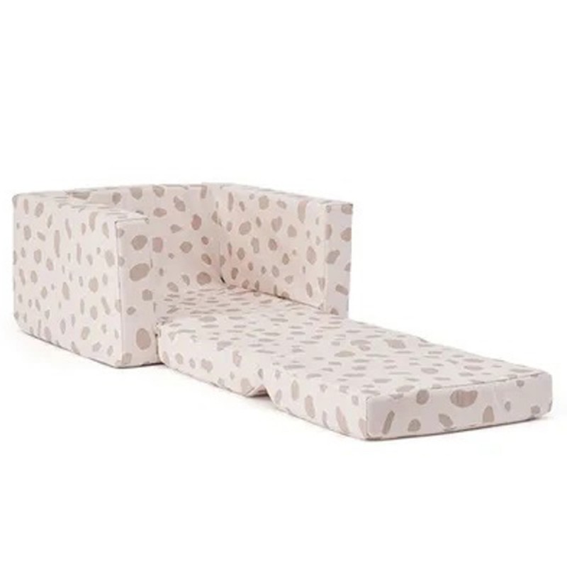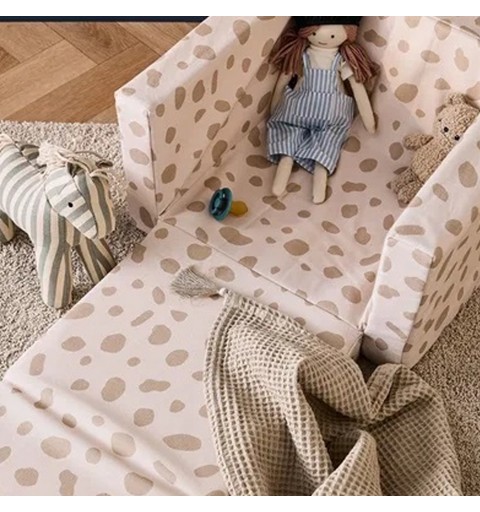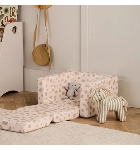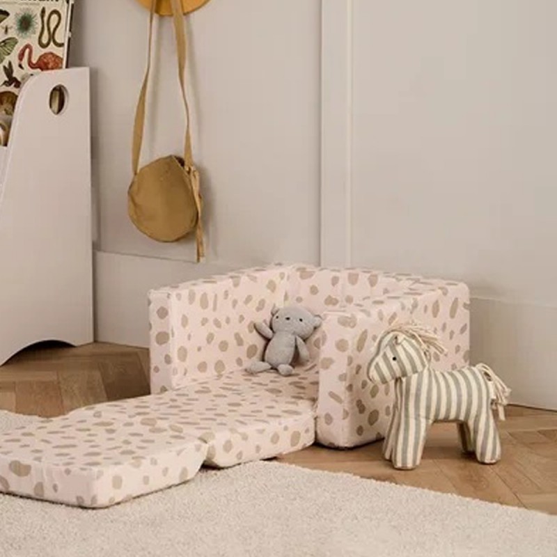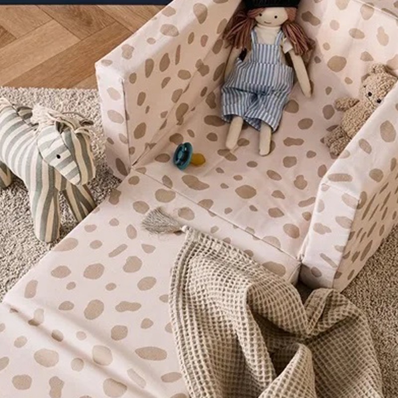 Lekki i poręczny fotelik dla dzieci, który można łatwo przestawiać w dowolne miejsce w domu. Idealny do czytania, oglądania bajek czy po prostu relaksu po całym dniu zabawy. Wystarczy rozłożyć, aby zamienił się w miękki materacyk – idealny na krótką drzemkę. Wykonany z trwałej bawełnianej tkaniny typu canvas i wygodnego wypełnienia z pianki PU, łączy styl z funkcjonalnością.