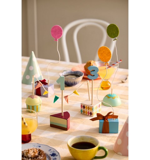 Niezależnie od tego, czy to 5. czy 50. urodziny, drewniany zestaw dekoracyjny sprawi, że każda uroczystość będzie jeszcze bardziej wyjątkowa. W zestawie znajdziesz pięć drewnianych dekoracji w kształcie prezentów, tortów i babeczek – każda z miejscem na umieszczenie cyfry oznaczającej wiek jubilata.