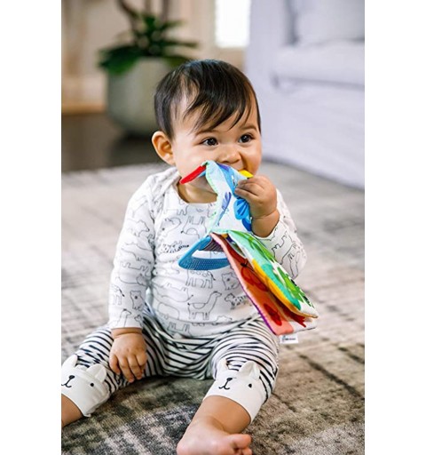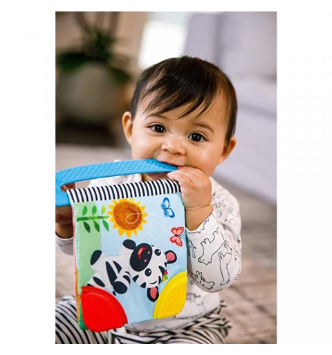 Miękka faktura i kształt ułatwiają dziecku trzymanie jej nawet w małych rączkach. Gryzaki na rogach książeczki zostały zaprojektowane tak, aby masować obolałe dziąsła podczas wyrzynania się pierwszych ząbków. Dzięki praktycznemu uchwytowi dziecko może zabrać tę kolorową książeczkę wszędzie ze sobą.