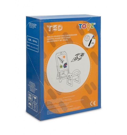 Nauka pisania i rysowania będzie teraz łatwiejsza, dzięki tablicy edukacyjnej TED od Toyz. Magnetyczna tablica zaopatrzona w zestaw markerów i kolorowych magnesów zawiera dodatkowo krzesełko, które pozwoli odpocząć zmęczonym nogom małego artysty. Wygląd zestawu przypadnie do gustu każdemu miłośnikowi niedźwiadków.