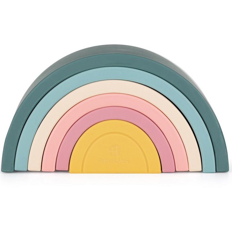 Miękkie silikonowe elementy wykonane zostały w całości z silikonu spożywczego bez BPA. Najwyższej jakości trwałe materiały, dbałość o detale oraz odpowiednio dobrane rozmiary łuków umożliwiają dziecku bezpieczną zabawę stymulującą jego rozwój.