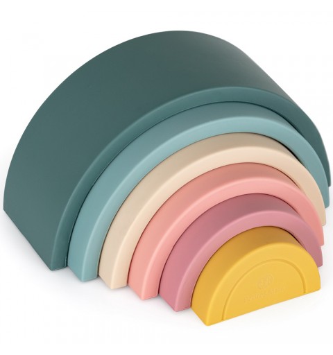 Petite&Mars Silikonowa zabawka, układanka Rainbow 12m+ | Misty Green