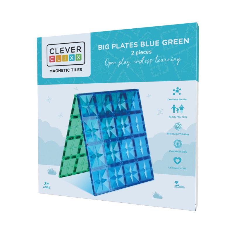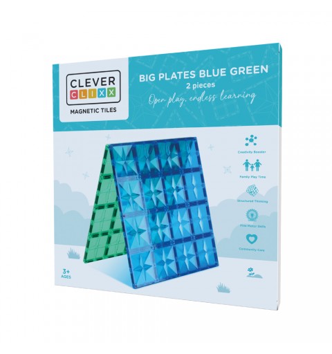 Cleverclixx - Klocki magnetyczne Big Plates Blue Green - 2 el.
