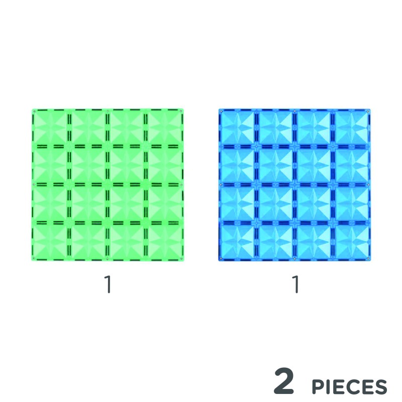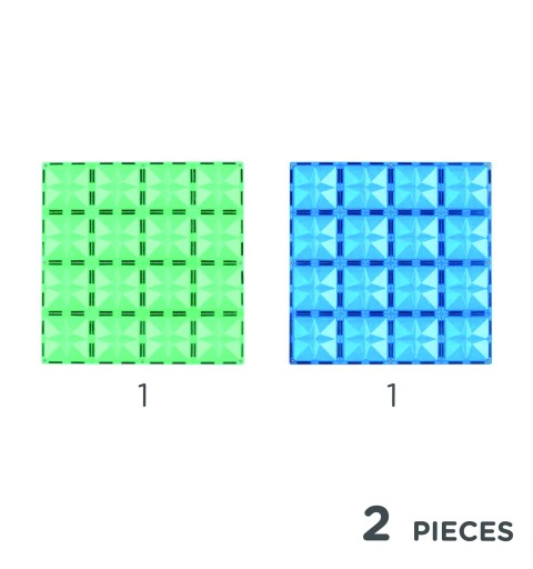 Dwie duże płytki kwadratowe, zaprojektowane, aby Twoje budowle z płytek magnetycznych były bardziej wytrzymałe. Zawsze warto zacząć budować na solidnym fundamencie. Te dwie płytki idealnie się do tego nadają. Można je również wykorzystać jako podstawę do budowania jeszcze wyższych konstrukcji. TAK!