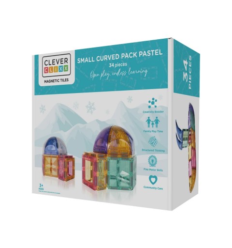 Cleverclixx - Klocki magnetyczne Small Curved Pack Pastel - 34 el.