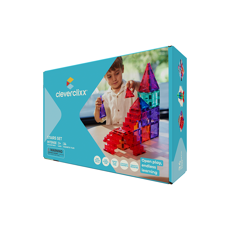 Cleverclixx - Klocki magnetyczne ze schodami - Stairs Set Intense 34 el.