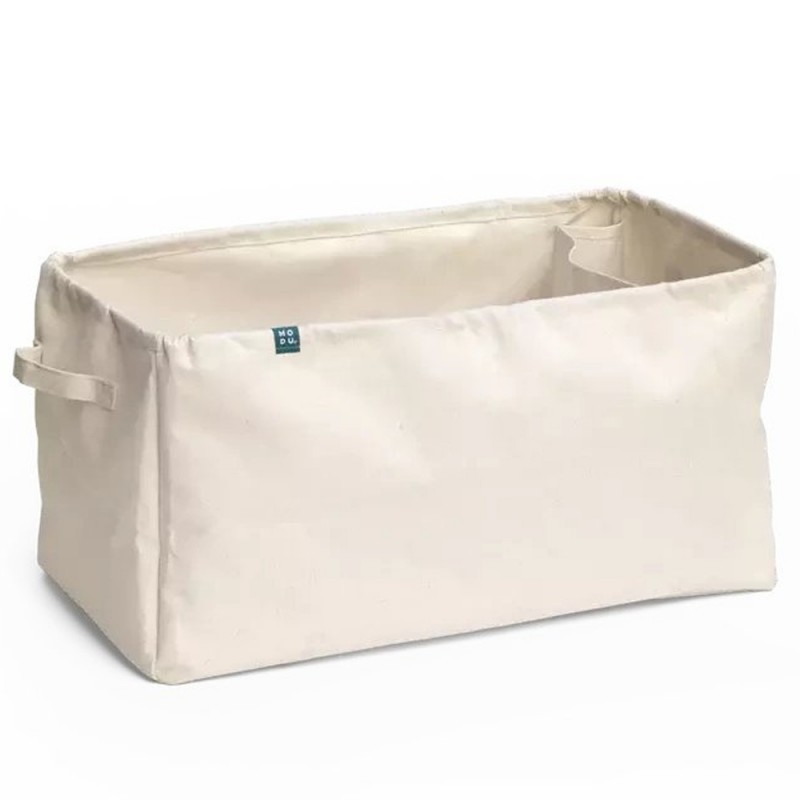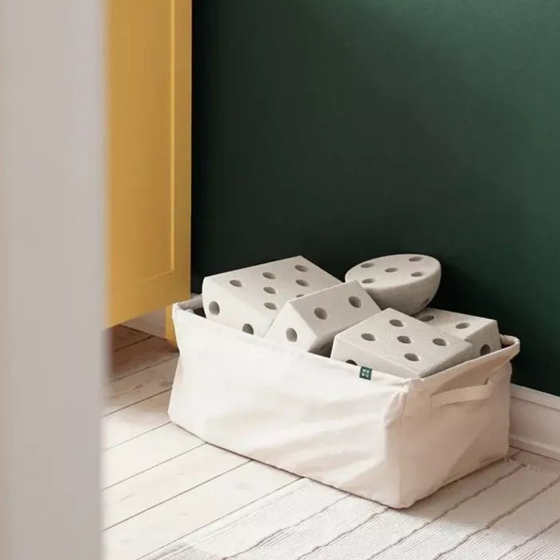 Porządek w mgnieniu oka! Duży płócienny kosz MODU to idealne miejsce do przechowywania i organizowania klocków oraz akcesoriów między kolejnymi zabawami. Neutralna kolorystyka i solidne wykonanie z bawełny z recyklingu sprawiają, że będzie pasować do każdego dziecięcego pokoju.