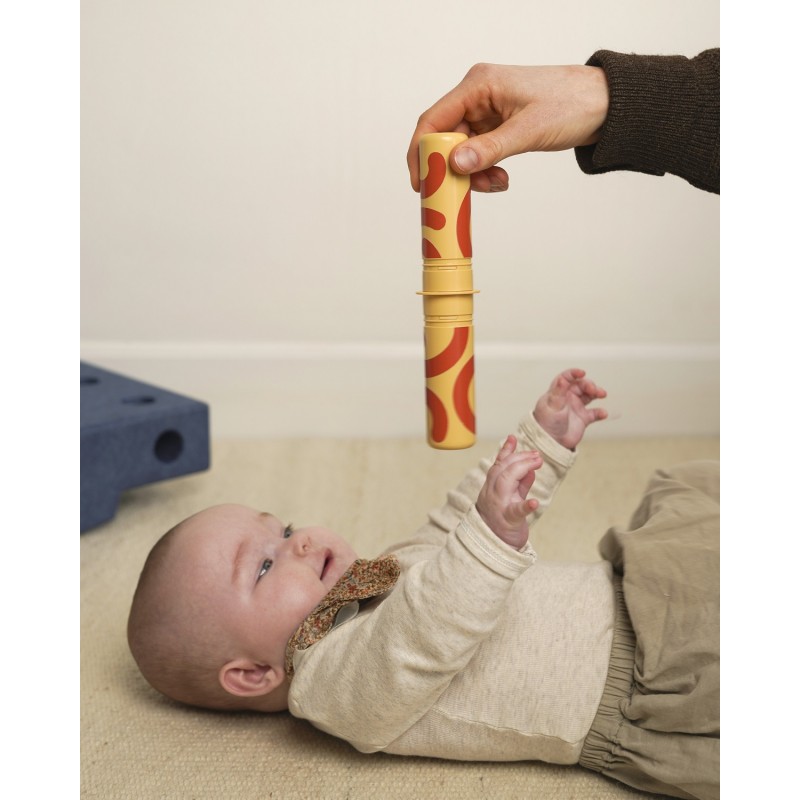 W zestawie poza sensorycznym blokiem piankowym, dzięki któremu maluszek może się położyć, chwiać, przechylać i kołysać znajdują się kolorowe grzechotki z ciekawymi wzorami i dźwiękami, zapewniającymi stymulację wizualną i sensoryczną — to idealny duet, który gwarantuje ciekawą, kreatywną i pobudzającą zmysły dziecka zabawę.