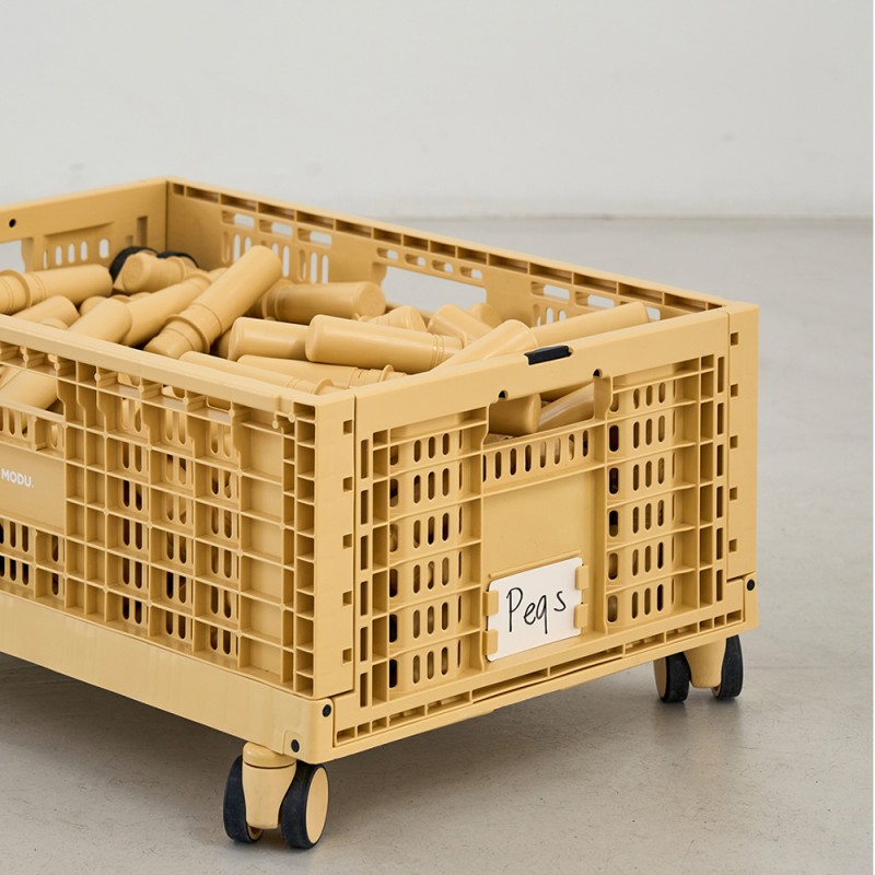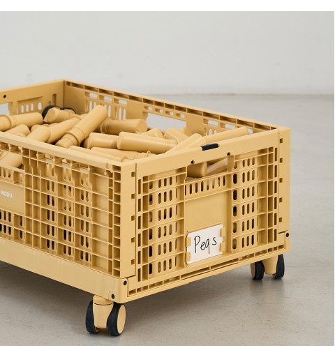 Gdy skrzynka nie jest używana, można ją złożyć na płasko, oszczędzając w ten sposób cenną przestrzeń. Do zestawu dołączone są etykiety, które ułatwiają organizację i szybkie odnajdywanie potrzebnych elementów. Skrzynka jest również kompatybilna z kółkami MODU (sprzedawanymi osobno), co pozwala na stworzenie mobilnego pojemnika na zabawki.