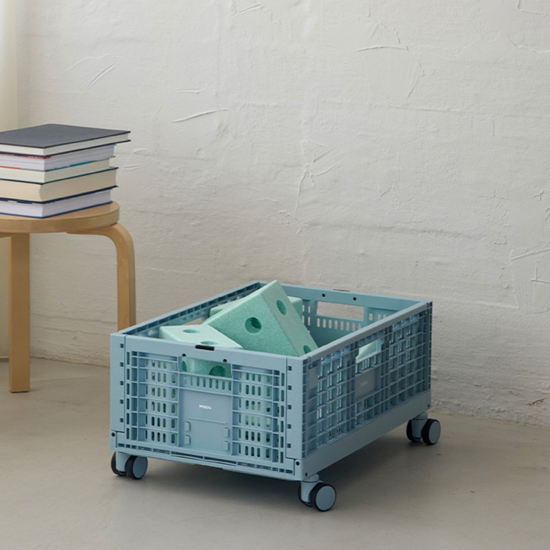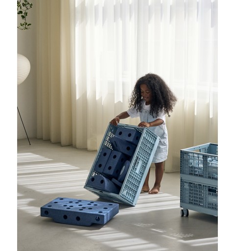 Gdy skrzynka nie jest używana, można ją złożyć na płasko, oszczędzając w ten sposób cenną przestrzeń. Do zestawu dołączone są etykiety, które ułatwiają organizację i szybkie odnajdywanie potrzebnych elementów. Skrzynka jest również kompatybilna z kółkami MODU (sprzedawanymi osobno), co pozwala na stworzenie mobilnego pojemnika na zabawki.