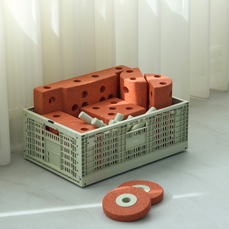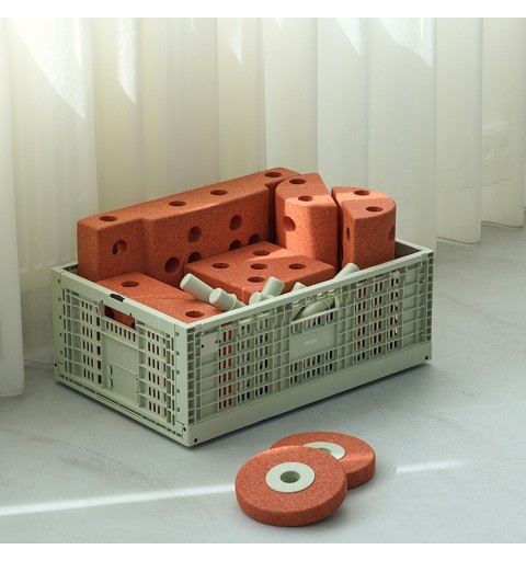 Gdy skrzynka nie jest używana, można ją złożyć na płasko, oszczędzając w ten sposób cenną przestrzeń. Do zestawu dołączone są etykiety, które ułatwiają organizację i szybkie odnajdywanie potrzebnych elementów. Skrzynka jest również kompatybilna z kółkami MODU (sprzedawanymi osobno), co pozwala na stworzenie mobilnego pojemnika na zabawki.