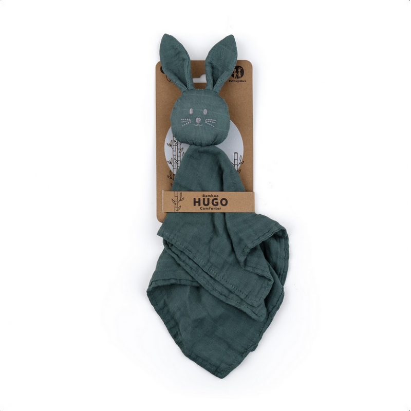 Słodki króliczek Hugo, wykonany z delikatnego muślinu bambusowego, ma jedno sekretne hobby. Najbardziej lubi leżeć w łóżku i spać. Jest świetnym kompanem i przytulanką dla najmłodszych. Hugo uwielbia się przytulać, przynosząc uczucie ciepła i bezpieczeństwa. Jest bardzo delikatny i miękki w dotyku, potrafi ukoić zmęczonego maluszka.