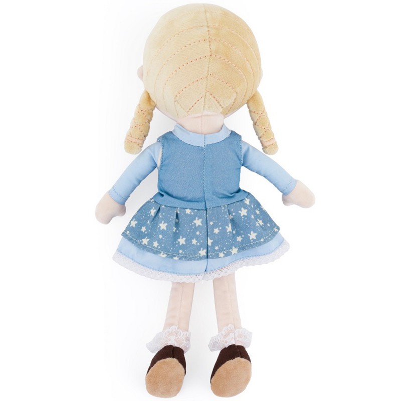 Lalka wykonana jest z bardzo przyjemnego materiału, ubrana w przepiękną sukienkę, idealnie uczesana w złociste warkocze. Jeśli się zabrudzi, można ją po prostu wyprać ręcznie w temperaturze 30°. Pobudza wyobraźnię i fantazję u dzieci oraz rozwija umiejętności poznawcze dzięki zróżnicowanym kształtom i fakturom.