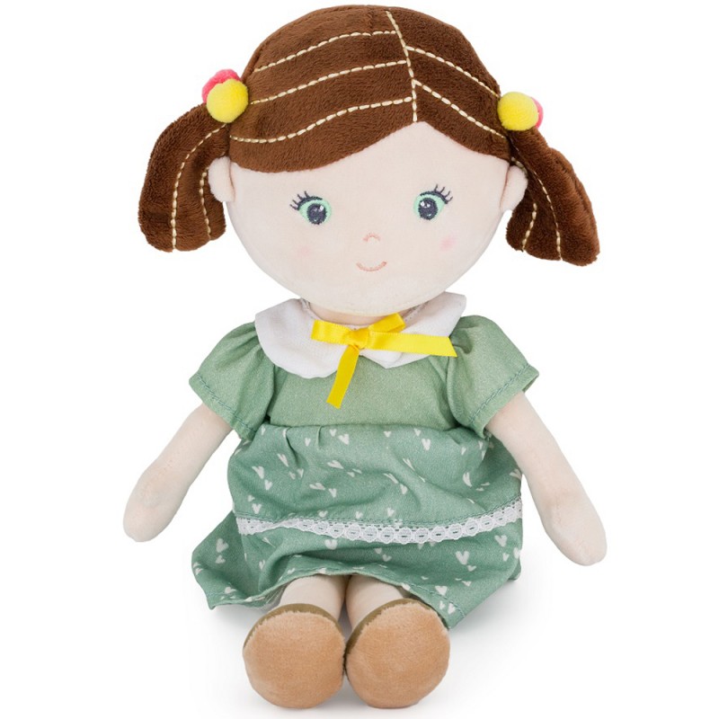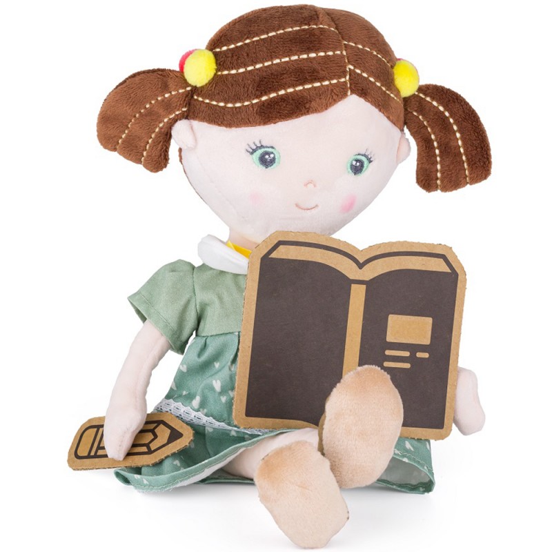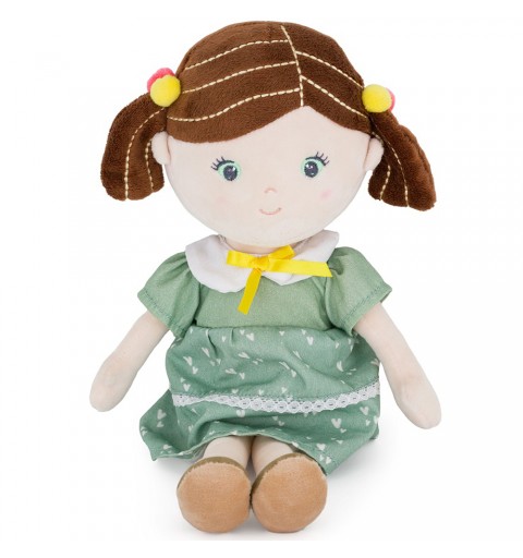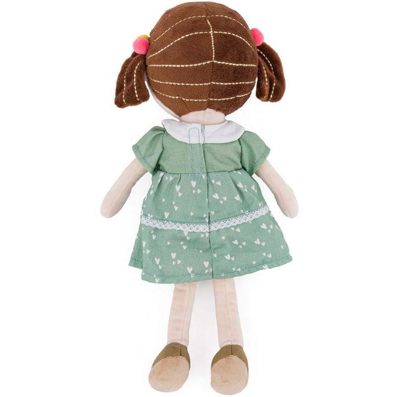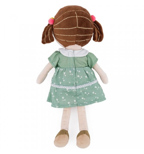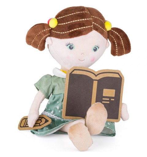 Lalka wykonana jest z bardzo przyjemnego materiału, ubrana w przepiękną sukienkę, idealnie uczesana w brązowe kucyki. Jeśli się zabrudzi, można ją po prostu wyprać ręcznie w temperaturze 30°. Pobudza wyobraźnię i fantazję u dzieci oraz rozwija umiejętności poznawcze dzięki zróżnicowanym kształtom i fakturom.
