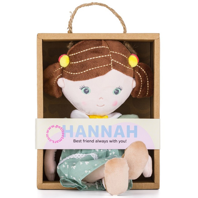 Hannah to słodka, materiałowa lalka, która stanie się nieodłączną przyjaciółką każdego małego dziecka. Uwielbia się bawić i miło spędzać czas, a do tego jest wręcz stworzona do tulenia. Każdego dnia jest radosna i gotowa na nowe przygody. W nocy strzeże spokojnych snów i daje dziecku poczucie bezpieczeństwa. Zasypianie z Hannah jest takie proste. Jej praktyczna natura objawia się w uwielbieniu do szkoły i nauki.