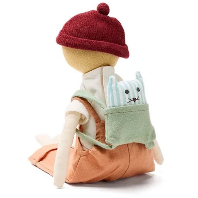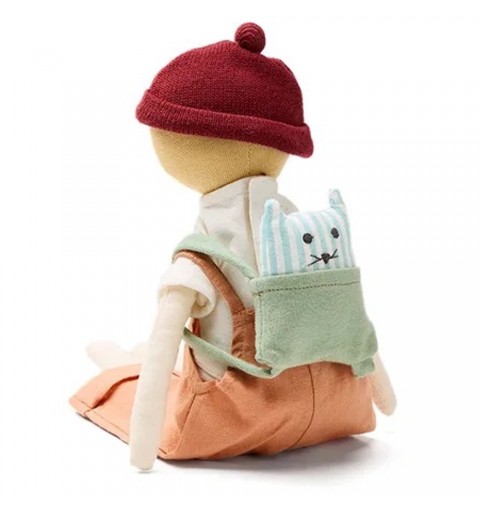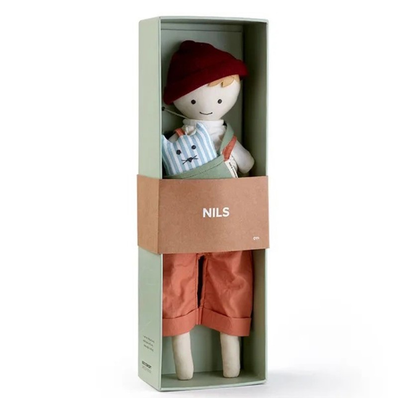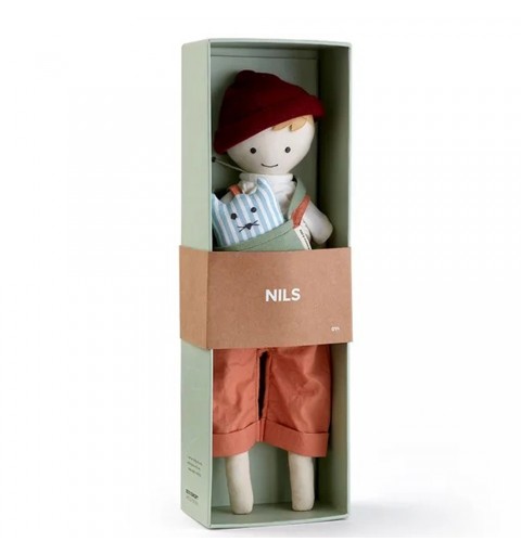 Nils to szmaciana, miękka lalka, którą zawsze można spotkać z wiernym pomocnikiem, Socksem, psotnym kotkiem w paski, schowanym wygodnie w plecaku. Lalka Nils ma głęboką pasję do natury, zwłaszcza urokliwych szwedzkich lasów, i równie silną miłość do tworzenia własnych ubrań, dodając oryginalności każdemu swojemu ściegu.