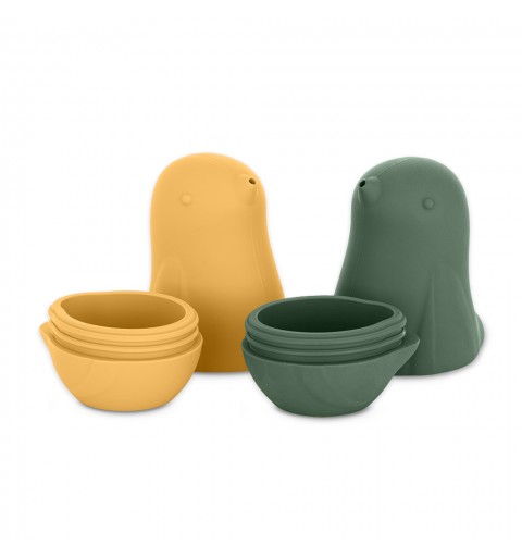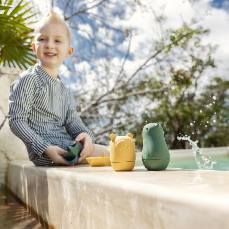 Petite&Mars Silikonowa zabawka kąpielowa Love Birds 6m+ | Ochre Green