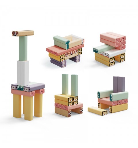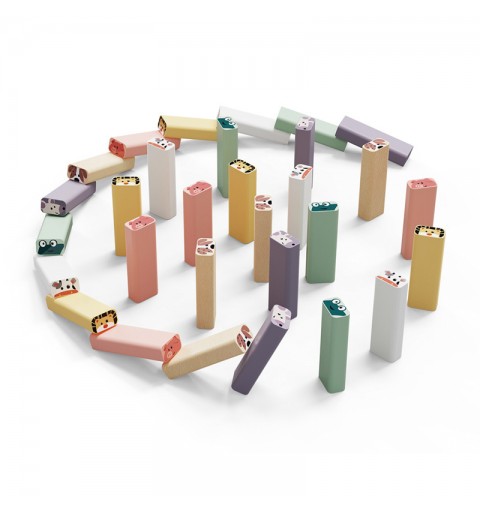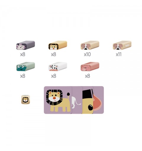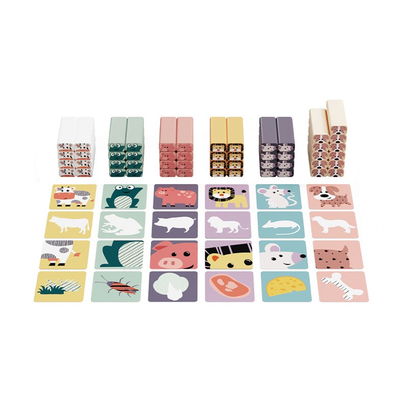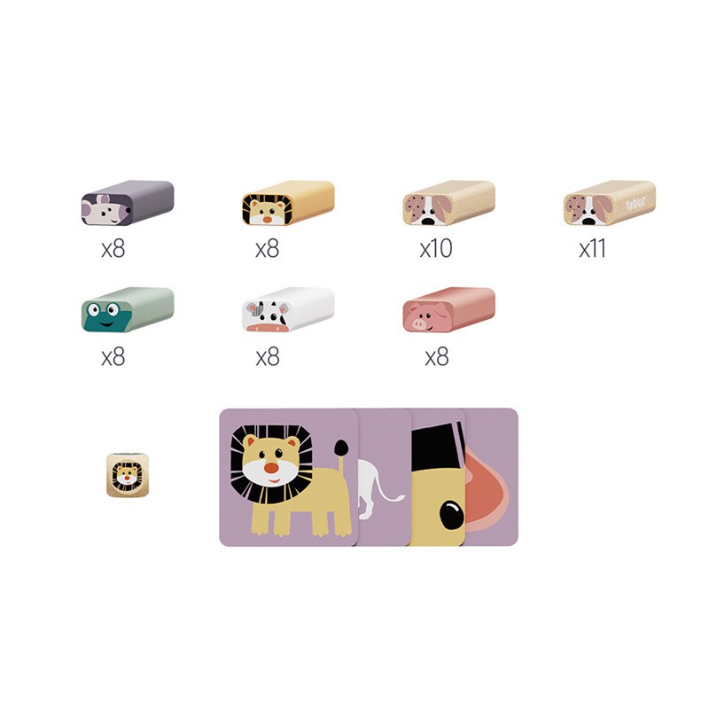 51 kolorowych drewnianych klocków z nadrukami zwierząt