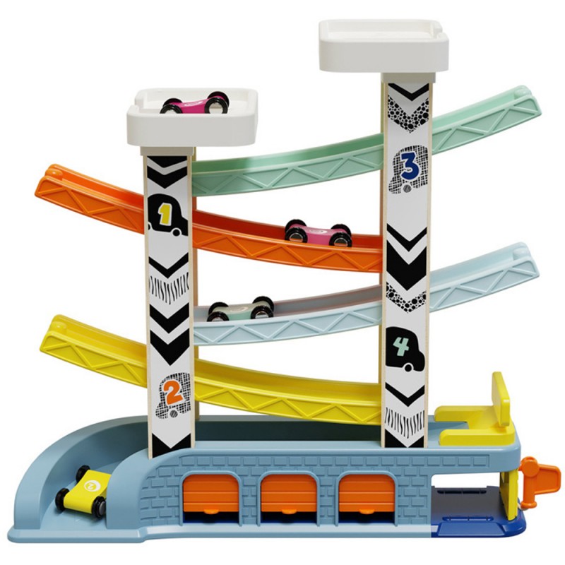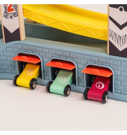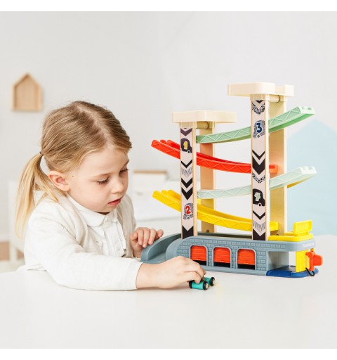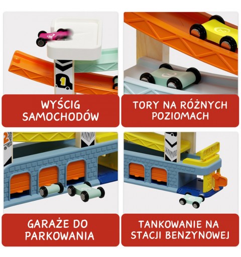 Topbright - Tor wyścigowy dla dzieci – zjeżdżalnia z autami, garażami i stacją benzynową 18 mies.+