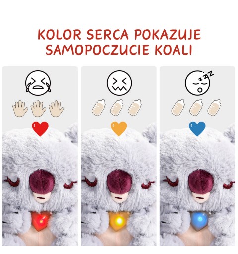 Reagujące serce – Baby Koala zmienia kolor swojego serca w zależności od emocji. Zielone oznacza szczęście, czerwone – marudzenie, żółte – głód, a niebieskie – zmęczenie. To doskonały sposób, by zrozumieć, jak ważna jest opieka nad innymi!